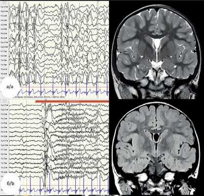 В случаях с дисплазиями I типа тератогенное воздействие на развивающийся мозг и организующуюся кору приходится позже, ближе к III триместру, а иногда и постнатально, когда ее специализированные участки (зрительная и сенсомоторная кора) уже организованы и функционально сформированы. Кроме того, территория, охваченная такими формами дисплазии, редко ограничивается одной-двумя извилинами. Чаще поражается и становится эпилептогенной обширная зона какого-либо из регионов, которая в немалом числе случаев охватывает несколько смежных долей полушария, без очевидных границ на ЭЭГ и МРТ. Судьба таких детей, в особенности, когда поражен задний (теменно-затылочно-задневисочный) регион полушария, трагична. Обычно они начинают болеть с первых месяцев жизни, чаще в форме эпилептических спазмов, которые не поддаются антиэпилептическому лечению и очень быстро запускают процесс эпилептической энцефалопатии. В таких ситуациях, обсудив неврологический дефицит с родителями и семьей, вместо декортикации разумнее прибегнуть к дисконнекции этих отделов в пределах их анатомических границ, а при еще более обширном поражении — вплоть до гемисферотомии.