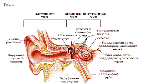 Ухо состоит из нескольких частей: наружное ухо, слуховой проход, среднее ухо и внутреннее ухо (рис. 1). Полость среднего уха обычно заполнена воздухом, в нем находятся маленькие косточки, которые соединяют барабанную перепонку с внутренним ухом. Внутреннее ухо содержит нервные окончания, которые передают звуковые сигналы для обработки в мозг. Среднее ухо соединяется с глоткой посредством слуховой (Евстахиевой) трубы, которая открывается и смыкается во время зевания или глотания. Вы можете почувствовать, как работают слуховые трубы во время полета в самолете, при этом в ушах слышатся щелчки.