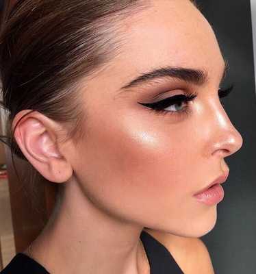 ✮ В конце мы беремся за бронзер и хайлайтер . Первый наносим на те зоны, куда чаще всего падает свет, а второй лишь на выступающие области лица.
