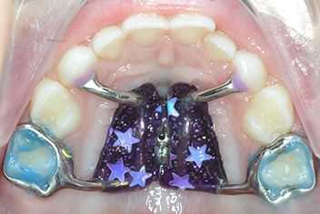 - Над дизайном несъемной пластинки ребенок «работает» сам: выбирает цвет, добавляет блестки, звездочки, рисунки - проявляет фантазию. Это вовлекает малыша и мотивирует к лечению.