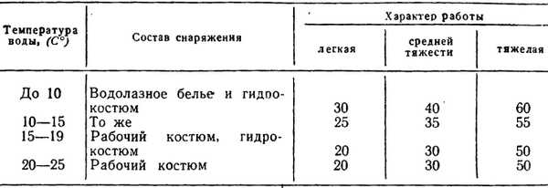 Перед каждым погружением точно рассчитывают время пребывания водолаза под водой следующим образом.
