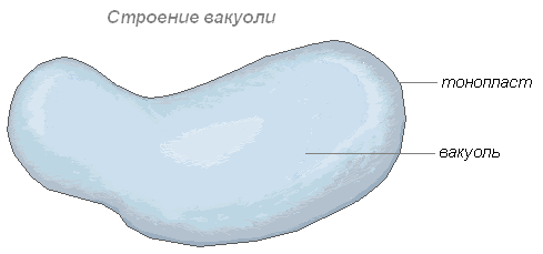 Вакуоль — важнейшая составная часть растительных клеток. Она представляет собой своеобразную полость (резервуар) в массе цитоплазмы, заполненную водным раствором минеральных солей, аминокислот, органических кислот, пигментов, углеводов и отделённую от цитоплазмы вакуолярной мембраной — тонопластом.