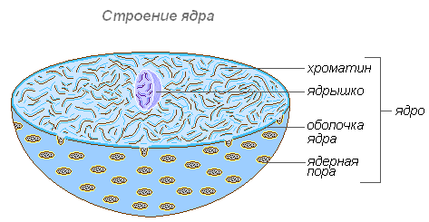 Клеточное ядро состоит из оболочки, ядерного сока (нуклеоплазмы), ядрышка и хроматина. Функциональная роль ядерной оболочки заключается в обособлении генетического материала (хромосом) клетки от цитоплазмы и в регуляции двусторонних взаимодействий ядра и цитоплазмы. Основу ядерного сока составляют белки. Ядерный сок образует внутреннюю среду ядра, в связи с чем он играет важную роль в обеспечении функционирования генетического материала.