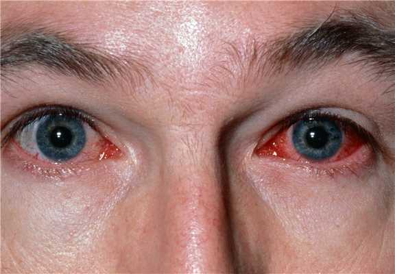 При отеке бульбарная конъюнктива становится полупрозрачной, утолщается и приобретает синеватый оттенок. При выраженном отеке возможно вздутие конъюнктивы с формированием пролапса, также известного, как хемоз.