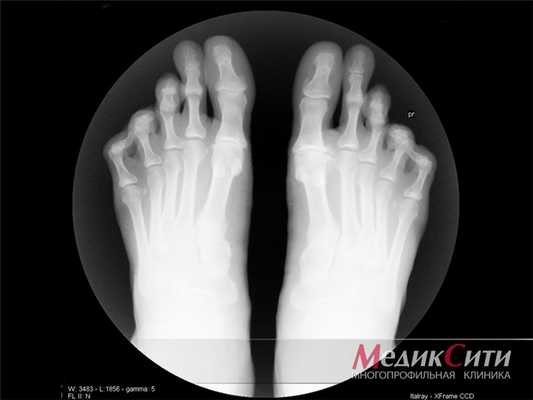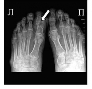 Рентгенография в начале заболевания проводится с целью дифференциальной диагностики с другими артропатиями, специфические же признаки подагры при этом отсутствуют. Только при переходе патологии в хроническую форму на снимках можно увидеть внутрикостные тофусы, краевые эрозии костей.