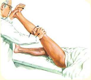 Положительный тест ПВЯ (+++) при внутренней ротации голени, свидетельствующий о повреждении ПКС и обоих менисков