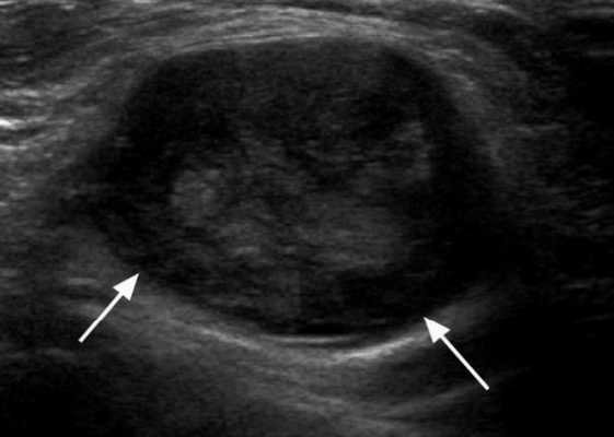 При интерпретации УЗ-снимков врач оценивает особенности визуализации исследуемых структур. Основными объектами изучения выступают соединительнотканная капсула и ворота, где проходят артерии, вены, нервы и лимфатические сосуды. В норме доктор четко дифференцирует указанные анатомические образования в зоне интереса.