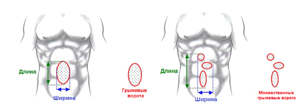 - определить точную локализацию, истинные размеры и форму основного грыжевого дефекта, а также выявить дополнительные грыжевые ворота;