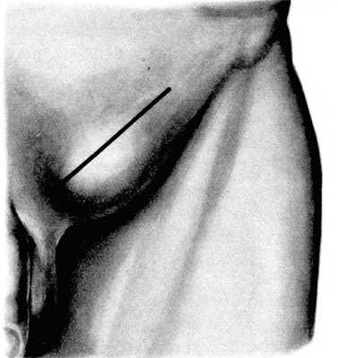 Рис. 19. Оперативный доступ к грыжевому мешку при паховой грыже.