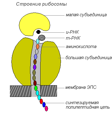 Рибосомы синтезируются в ядре, затем покидают его, переходя в цитоплазму, где прикрепляются к наружной поверхности мембран эндоплазматической сети или располагаются свободно. В зависимости от типа синтезируемого белка рибосомы могут функционировать по одиночке или объединяться в комплексы — полирибосомы.