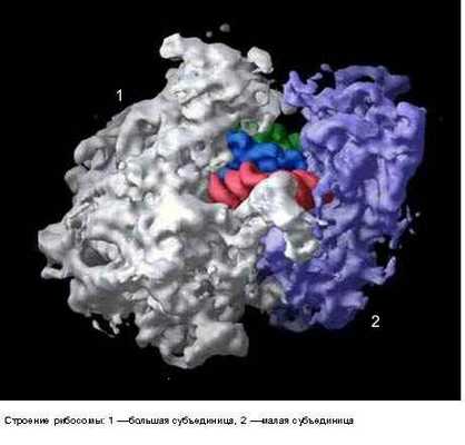 Рибосомы — немембранные клеточные органоиды. Каждая рибосома состоит из двух не одинаковых по размеру частичек и может делиться на два фрагмента, которые продолжают сохранять способность синтезировать белок после объединения в целую рибосому.