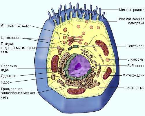 Клетка (лат."цкллюла" и греч. "цитос") - элементарная жи вая система, основная структурная единица растительных и животных организмов, способная к самовозобнавлению, саморегуляции и самовоспроизведению. Открыта английский ученым Р. Гуком в 1663г., им же предложена этот термин. Клетка эукариотов представлена двумя системами - цитоплазмой и ядром. Цитоплазма состоит из различных органелл, которые можно классифицировать на: двухмембраные - митохондрии и пластиды; и одномембранные - эндоплазматическая сеть (ЭПС), Аппарат Гольджи, плазмалемма, тонопласты, сферосомы, лизосомы; немембранные - рибосомы, центросомы, гиалоплазма. Ядро состоит из ядерной оболочки (двухмембранной) и немембранных структур - хромосом, ядрышка и ядерного сока. Кроме того, в клетках имются различные включения.