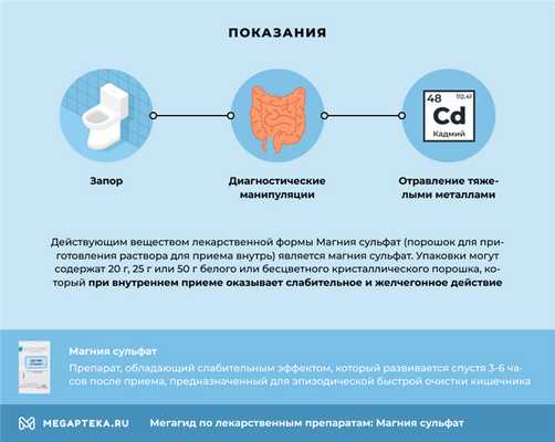 Действие в качестве антидота: Магния сульфат образует нерастворимые сульфатные комплексы тяжелых металлов, предотвращает всасывание в кровь и за счет слабительного эффекта выводит их из организма.
