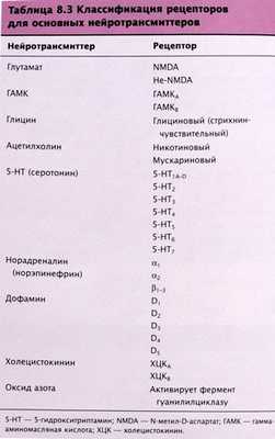 Таблица 8.10 Классификация главных пептидных нейромедиаторов центральной нервной системы