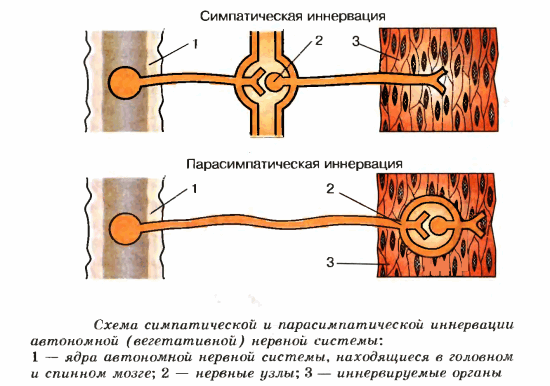 Все структуры и системы организма иннервируются волокнами вегетативной нервной системы. Отделы вегетативной нервной системы находятся в относительном функциональном антагонизме, обеспечивая автоматическую регуляцию органов и систем без участия сознания человека.