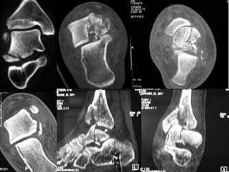 Таранная кость ломается заметно реже. Но при ее повреждениях могут возникать внутрисуставные отломки. Выраженную симптоматику они дают не всегда и часто заканчиваются развитием ложных суставов.