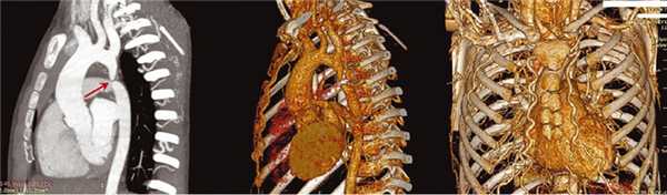 - МСКТ-ангиография. Мультиспиральная компьютерная ангиография аорты и магистральных сосудов рекомендована для получения трехмерного изображения, на котором четко видна двойная сосудистая дуга. С помощью МСКТ измеряют диаметр аорты на разных уровнях, обнаруживают участки атрезии.