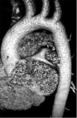 Рис. 1. КТ. Атрезия дуги аорты тип А по Celoria-Patton.