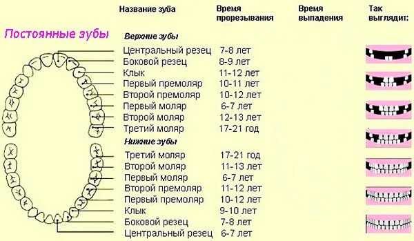 Сроки прорезывания постоянных зубов