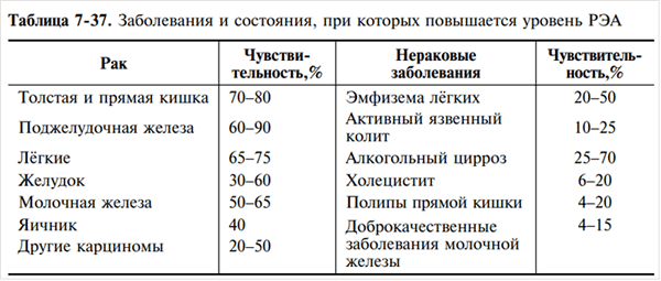 Увеличение концентрации РЭА более 20 нг/мл до начала лечения указывает на метастазирование опухоли.