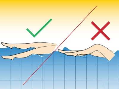 При этом стопы следует полностью расслабить и их нужно держать под водой, уменьшив количество брызг. На поверхности должны появиться небольшие волны, но не брызги.