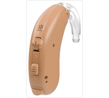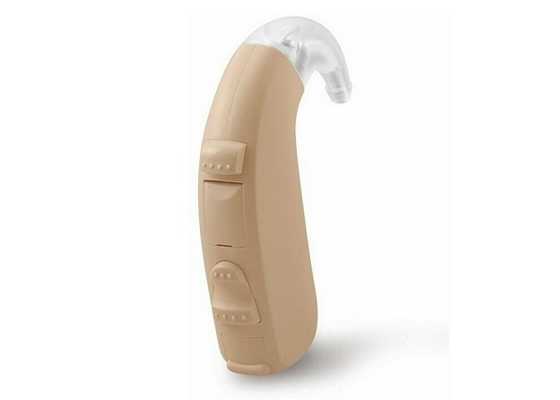 Современный слуховой аппарат с заушным креплением. Он производит обработку поступающих сигналов всех частот при помощи цифрового микропроцессора и обладает достаточно мощным уровнем выходной интенсивности сигнала.