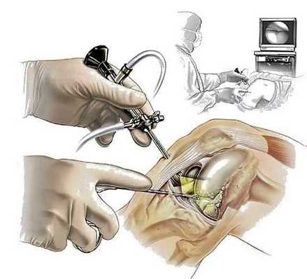 - Артроскопическая операция - современная методика, суть которой состоит во введении полость компонентов опорно-двигательного аппарата манипуляторов, микроинструментария и артроскопа (тонка трубка с видеокамерой, транслирующей изображение, а также подсветкой).