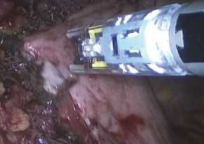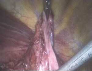 После мобилизации абдоминального отдела пищевода и его тракции завершалось выделение ножек диафрагмы с идентификацией заднего ствола блуждающего нерва. На этом же этапе выполнялась параэзофагеальная диссекция пищевода.