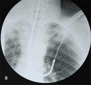 Пожалуй, ключевым моментом в предоперационном обследовании пациентов со злокачественными опухолями является определение стадии заболевания, то есть оценка степени распространенности рака (прорастание в окружающие органы, метастазы в лимфатические узлы и отдаленные органы). Именно стадия опухоли определяет прогноз и диктует выбор оптимальной тактики лечения. При раке легкого вопросы стадирования особенно остры и актуальны, так как цена решения о выполнении/невыполнении операции очень высока, а значит, от того насколько правильно и точно проведено стадирование зависит адекватность и эффективность лечения. Для предоперационного стадирования пациентов с раком легкого в нашем Центре разработан алгоритм, который согласуется с европейскими рекомендациями. У некоторых пациентов сочетание данных компьютерной томографии и позитронной эмиссионной томографии достаточно для определения стадии рака, однако в большинстве случаев для точного знания стадии необходимо прибегать к небольшой диагностической операции - видеомедиастиноскопии (рис. 6). Эта процедура нужна для биопсии лимфатических узлов средостения. Нами накоплен и проанализирован крупнейший в городе опыт использования видеомедиастиноскопии при раке легкого. Результаты нашего исследования показали, что выполнение видеомедиастиноскопии перед большой операцией на легком позволяет улучшить отдаленные результаты лечения.