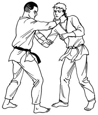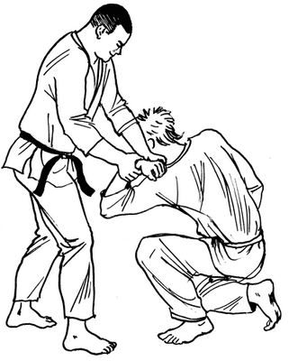 Примечание А. Давление, оказываемое на большие пальцы рук противника сначала слегка вверх, а потом вниз, заставит его немедленно ослабить захват.