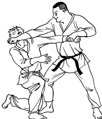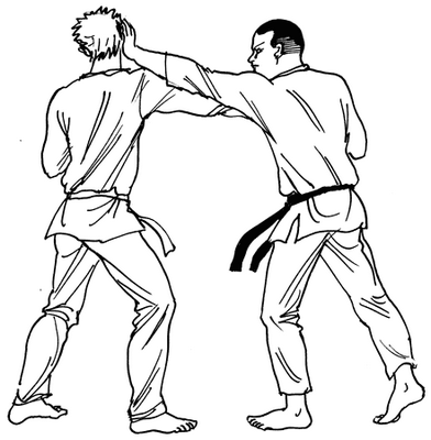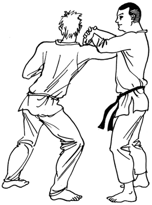 В случае необходимости завершите комбинацию ударом ребром ладони по тыльной стороне шеи противника.