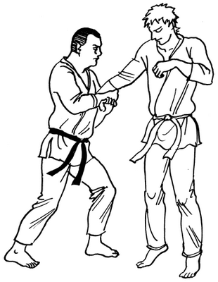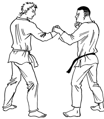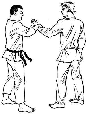Поймать кисть противника во время яростной драки бывает очень непросто, однако в ряде случаев он сам может помочь нам, хватая нас. Реальный поединок нельзя вести оборонительно. Нужно атаковать противника до тех пор, пока не победите его или вам не представится возможность скрыться. Если враг оказывается сильнее вас, а биться с ним насмерть сейчас нет резона, то не зазорно и отступить. Отступление - это маневр, а не бегство.