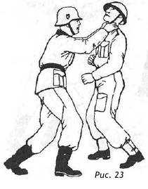 Противник схватил вас за горло спереди, как показано на рисунке 23.