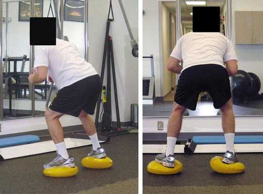 - легким раскачиванием туловища вправо-влево, стоя на ногах в позиции полусогнутых коленей, и другими координационными движениями, предназначенными для улучшения согласованной работы мышц.