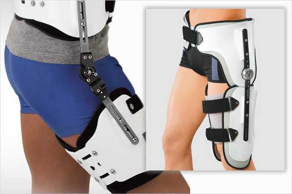 - В момент выполнения прописанных упражнений ЛФК после артроскопии на коленный сустав надевается наколенник умеренной жесткости либо эластичная повязка. Пациенту могут прописать ношение ортопедического приспособления (ортеза), которое фиксируется под разрешенным углом сгибания, к примеру, если была сделана коррекция связочных структур. На время ночного отдыха ортезное устройство устанавливается в позицию разгибания.