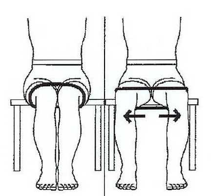 - задействовать неглубокие пружинистые приседания с амплитудой сгибания в 30°-40°, гимнастику с противодействием упругих механизмов (жгута, эспандера), приведение/отведение конечности (лежа на здоровом боку);
