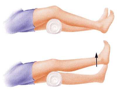 - подъем ноги с подложенным под колено валиком по четыре-пять раз.