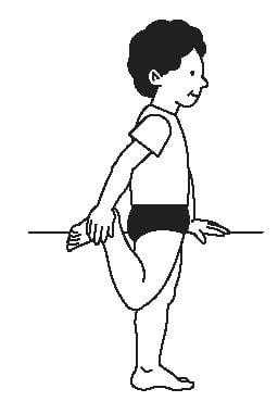 - подъем прямой ноги с натянутым на себя носком из положения лежа или сидя;
