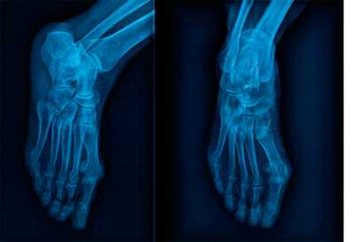 Для диагностики состояния стопы применяют рентгенологические методы, КТ и МРТ. Рентгенограмму делают в нескольких проекциях. На рентгене видны кости стопы и голеностопного сустава, плотность костей, а также состояние свода стопы. С помощью рентгенологических методов определяют переломы костей, деформации пальцев, дегенеративно-дистрофические заболевания суставов.