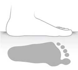 ![]() | Стопа не касается или почти не касается опоры своим наружным краем. Уменьшена площадь опоры стопы, под стопой развивается большое давление, что приводит к омозолелости. Рекомендуют стельки с выкладкой свода. При натоптышах под головками плюсневых костей показан метатарзальный валик. Делают подбор стелечного материала по эластичности |