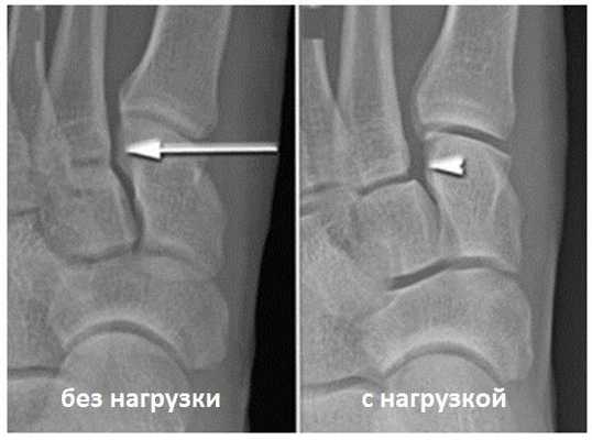 Если энергия травмы незначительная возможен изолированный разрыв связки Лисфранка с небольшим смещением основания 2 плюсневой кости в тыльном направлении. У молодых пациентов с небольшим весом такие изолированные повреждения могут вызывать только небольшой дискомфорт при физических нагрузках и при невысоких функциональных запросах лечатся консервативно.