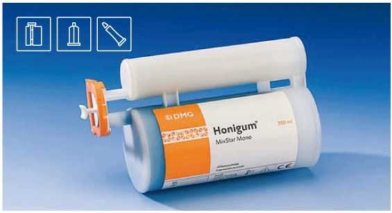 Самое точное отображение препарированного зуба, его шейки и десневой борозды дает методика получения двойного оттиска. Для этого применяют специальные силиконовые оттискные массы. Они состоят из нескольких паст: паста высокой вязкости для получения предварительного оттиска и паста низкой вязкости для его коррекции. Коррегирующую пасту можно вводить в десневую борозду, в каналы и полости в зубе с помощью специального шприца с канюлей для более точного и полного отображения указанныз анатомических структур.