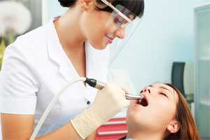 При воздушно-абразивном препарировании зубов вместо бормашины с вращающимся сверлом используется абразивно-воздушная смесь, подаваемая на нужный участок под большим давлением. При попадании абразивного порошка на эмаль или дентин происходит деструкция тканей.