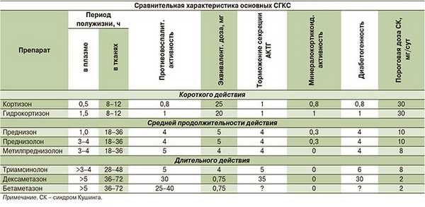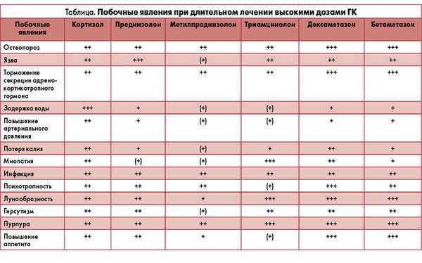 Если дозы большие, нарушается работа надпочечников и гипофиза. Искусственно синтезированные глюкокортикостероиды более эффективны, чем гормоны естественного происхождения, благодаря чему требуются довольно небольшие дозы синтетических ГСК. Самые распространенные вещества - дексаметазон и преднизолон, которые не влияют на риск развития гипертонии и отечности.