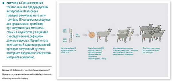Бактерии и дрожжи, культуры клеток яичника китайского хомячка и моркови, продуцирующие сырье для препаратов, — это хорошо, но довольно дорого, к тому же сборка некоторых сложных молекул тем же бактериям недоступна из‑за биохимических различий с человеком. Идея перевода «биореакторов» на подножный корм или удобрения давно витала в воздухе. Механизм в целом тот же: нужный ген встраивается в ДНК животного или растения. ДНК микроинъекцией вводится в ядро оплодотворенной яйцеклетки, которая имплантируется в матку. Большинство эмбрионов, конечно, погибает, а среди родившихся животных далеко не все производят нужное вещество. Тем не менее на сегодняшний день мы имеем трансгенных коров, коз, свиней, кроликов, кур, лососей и шелкопряда. Из их биологических жидкостей в экспериментах получены человеческие α-антитрипсин, альбумин, гемоглобин, эритропоэтин, гормоны, факторы свертывания крови, шовный и перевязочный материал… Стоило ли ради свиной спермы отходить от женской мочи, пока не ясно, ведь сложности с очисткой сохраняются, да и цена этих препаратов с учетом технологического процесса всё еще будет очень высокой.