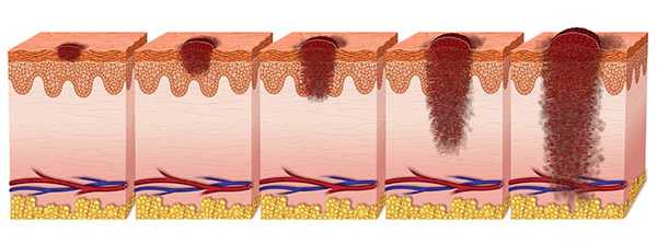 - вторая. Сопровождается более быстрым распространением опухолевого процесса. Рак прорастает в кожу на глубину до 2 мм. Изменения характеризуются соответствующей клинической картиной. Опухолевое образование покрывается язвами, кровоточит и шелушится. На второй стадии меланомы регионарные лимфатические узлы не поражаются;