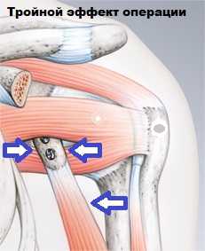 Операция включает в себя перемещение клювовидного отростка с присоединенной к нему мышцей и фиксация его к передне-нижнему краю суставной впадины.