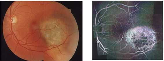 Примеры флюоресцентной ангиографии и ОКТ при остеоме хориоидеи