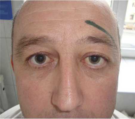 Рис. 1. Внешний вид больного. Легкий стационарный экзофтальм слева со смещением глаза книзу.