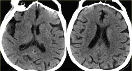 Ниже представлены изображения пациента, у которого были установлены неврологические проявления около часа назад. Постарайтесь выявить патологические изменения, а после продолжите чтение.